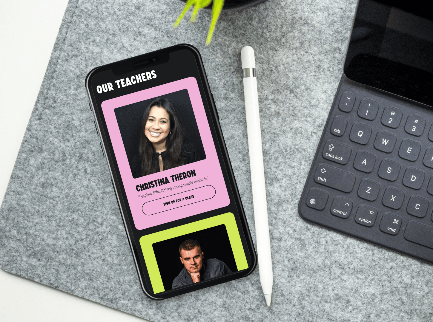 Daarnaast is er een speciale sectie ontwikkeld om de docenten en hun ervaring te presenteren, waardoor potentiële studenten vertrouwen krijgen en een persoonlijke connectie voelen.